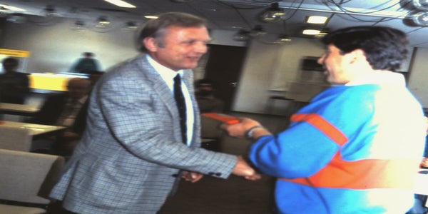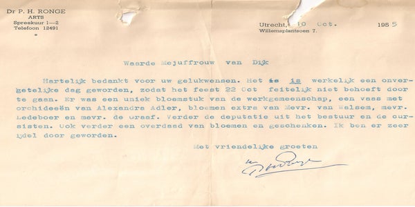 Bij het afscheid van Dr Ronge. Voorzitter van de NWIP. Hij was 50 jaar arts en werd ter gelegeheid van zijn 70 ste verjaardag in het zonnetje gezet.